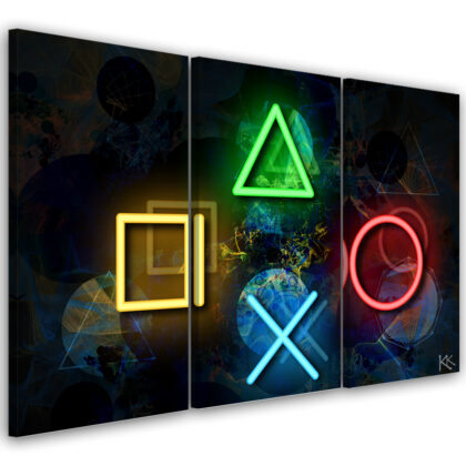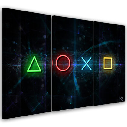 Obraz 3 częściowy na płótnie, Przyciski do kontrolera i napis play