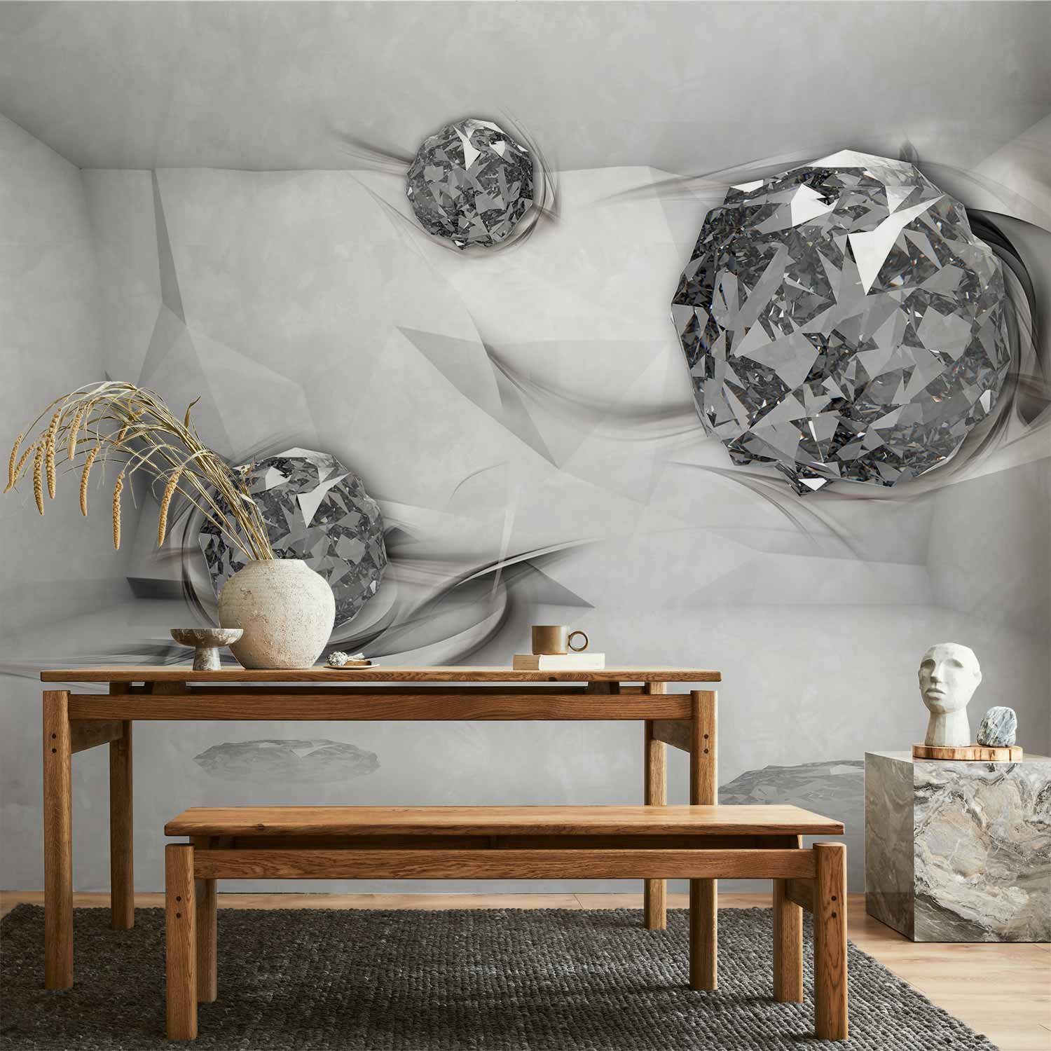 Fototapety stają się coraz bardziej popularne i z pewnością jeszcze długo będą wpisywać się w obowiązujące trendy wnętrzarskie. Wynika to m.in. z faktu, że dają spektakularne efekty, a ich montaż nie stanowi dużego problemu. Fototapeta “Fototapeta – Diamentowa komnata” pozwala na całkowitą zmianę dotychczasowej aranżacji i to bez potrzeby przeprowadzania gruntownego remontu. Wystarczy odpowiednio dobrać wzór, aby stworzyć klimatyczne i eleganckie wnętrze. Nasze fototapety na wymiar to odpowiedni wybór dla każdego, komu marzy się metamorfoza domu. Z ich pomocą można bez dużego wysiłku odświeżyć dowolne pomieszczenie, a więc sypialnię, salon, pokój dziecka czy jadalnię. Fototapety ścienne są niezwykle łatwe w montażu. W porównaniu do zwykłego malowania praca nie zajmuje tak dużo czasu, można z powodzeniem wykonać ją samodzielnie. W dodatku taka dekoracja pozwala na zamaskowanie niedoskonałości ścian (np. trudnych do usunięcia plam) i uzyskanie doskonałych efektów.