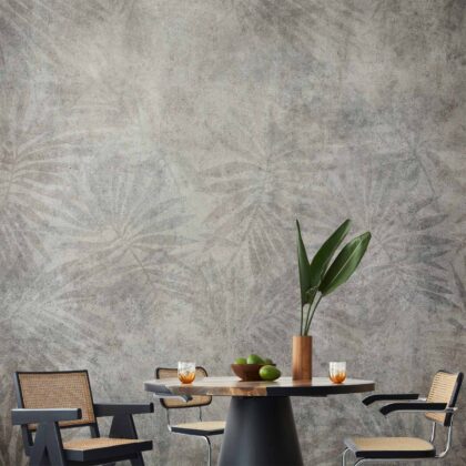 Fototapeta – Natura w stylu retro – pejzaż z liśćmi i kwiatami w szarych tonach